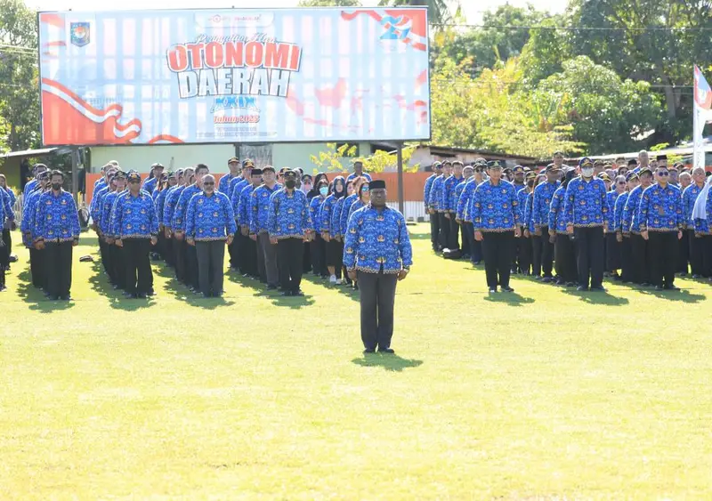Upacara Hari Otda ke-29 di Papua Selatan diikuti oleh seluruh organisasi perangkat daerah serta unsur forum komunikasi pimpinan daerah. (Elisabeth)