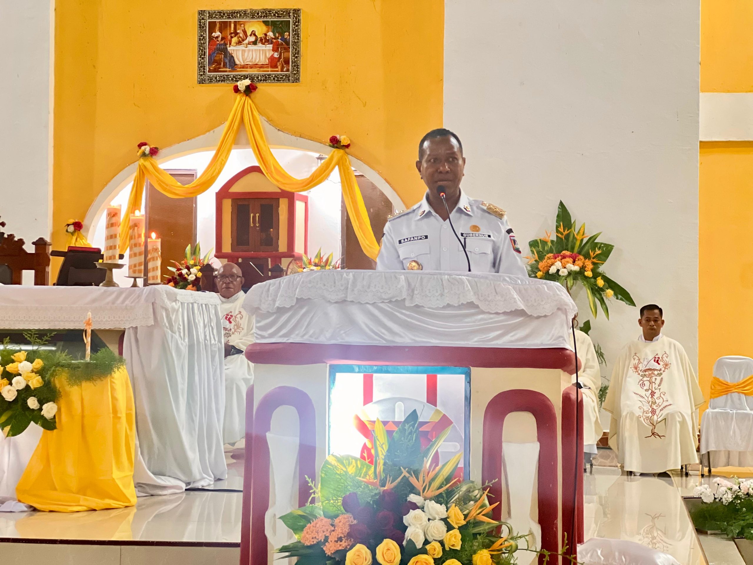 Masih dalam sambutan, Gubernur Apolo menyebut, sementara ia bersama Forkopimda melakukan kunjungan kerja di tanah merah sehingga menyempatkan waktu untuk hadir dalam misa syukur ini.