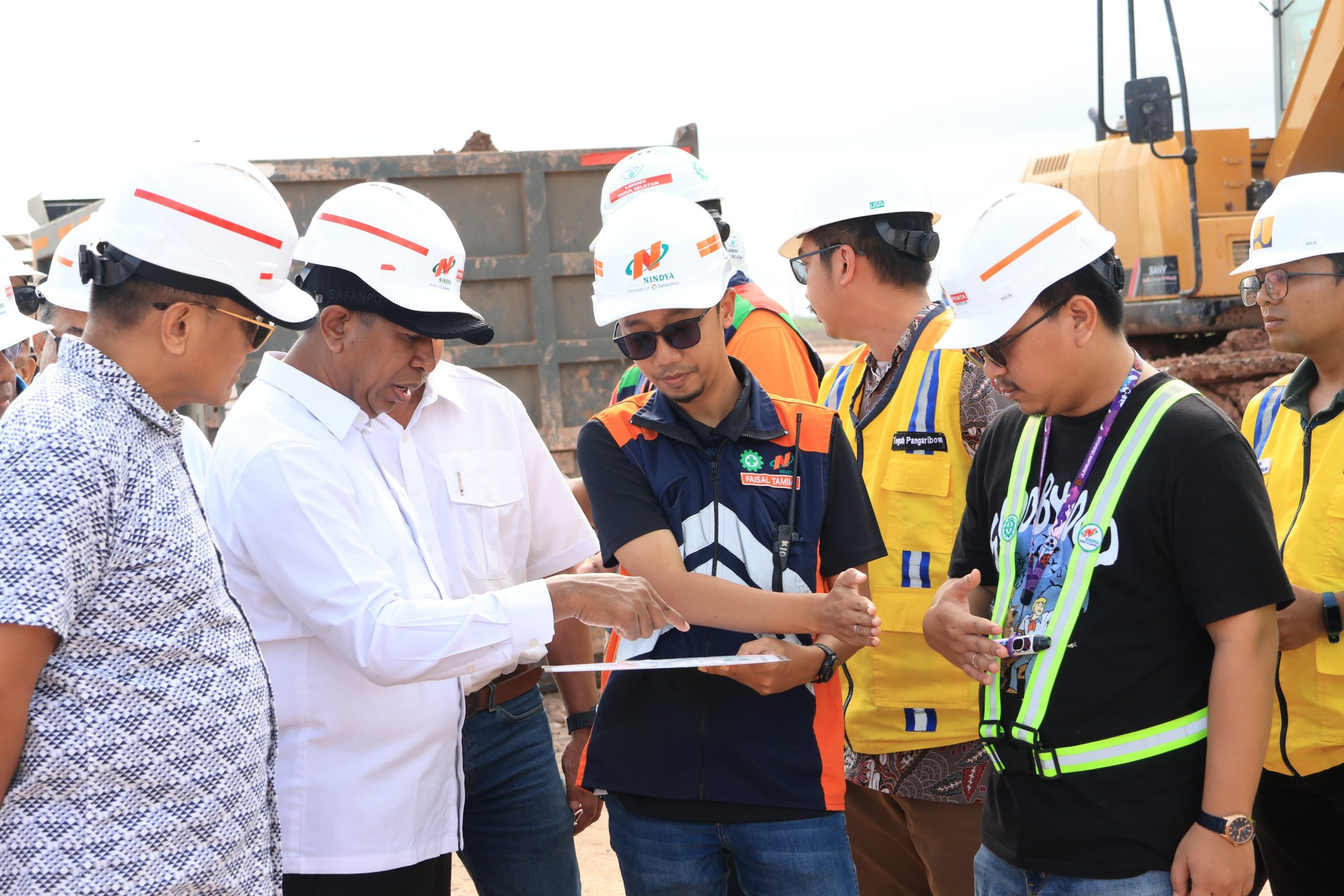 MERAUKE, SUARA BENTARA | Gubernur Papua Selatan, Apolo Safanpo bersama sejumlah pejabat memantau proses pembangunan infrastruktur pusat pemerintahan Provinsi Papua Selatan di Kota Mandiri Terpadu, Salor, Distrik Kurik, Kabupaten Merauke, Minggu (10/8/2025).