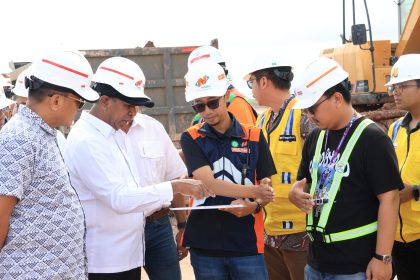 MERAUKE, SUARA BENTARA | Gubernur Papua Selatan, Apolo Safanpo bersama sejumlah pejabat memantau proses pembangunan infrastruktur pusat pemerintahan Provinsi Papua Selatan di Kota Mandiri Terpadu, Sal...