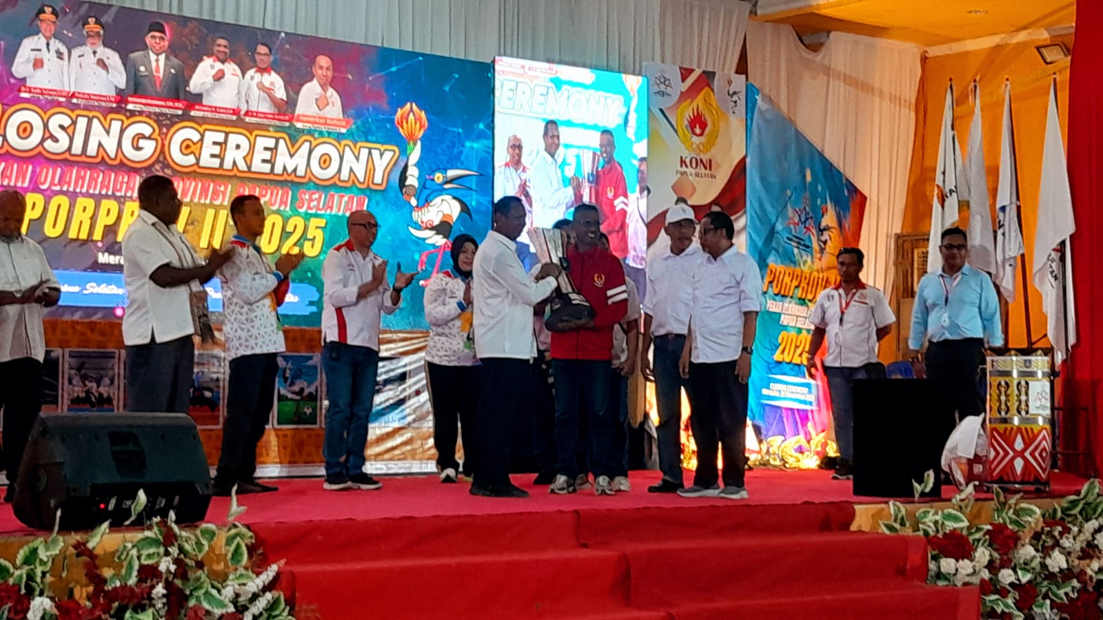 Merauke, Suara Bentara | Gubernur Papua Selatan, Apolo Safanpo, menutup kegiatan Pekan Olahraga Provinsi atau Porprov II Papua Selatan yang berlangsung dari 25-29 November 2025. Acara penutupan berlangsung di GOR Hiad Sai Merauke pada Sabtu (29/11/2025).