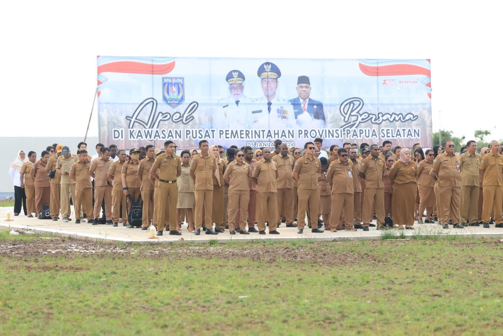 Apel yang berlangsung di lapangan Kantor Gubernur Papua Selatan itu diikuti ribuan Aparatur Sipil Negara (ASN) di lingkungan Pemerintah Provinsi Papua Selatan.