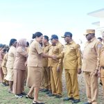 Acara ditutup dengan ramah tamah dan sesi foto bersama antara wakil gubernur, para guru, siswa, serta pensiunan guru sebagai bentuk penghargaan atas dedikasi mereka dalam dunia pendidikan. (Emanuel)