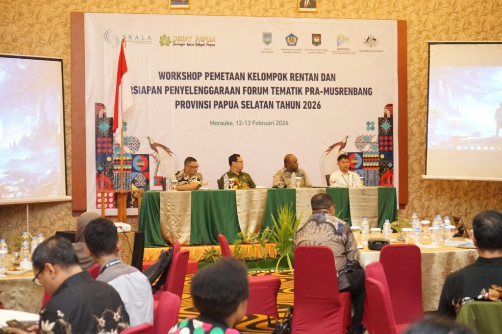 Upaya tersebut dilakukan melalui workshop pemetaan kelompok rentan dan persiapan forum tematik pra-Musrenbang 2026 yang digelar Badan Perencanaan Pembangunan, Riset, dan Inovasi Daerah (Bapperida) Papua Selatan di Merauke, Kamis (12/2/2026).