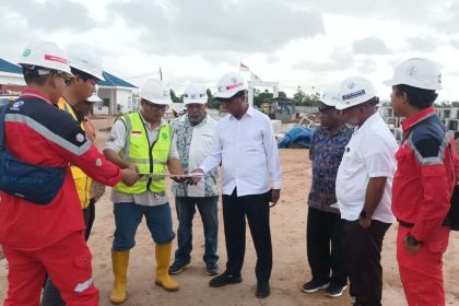 MERAUKE, SUARA BENTARA | Gubernur Papua Selatan, Apolo Safanpo bersama unsur Forum Komunikasi Pimpinan Daerah atau Forkopimda meninjau pembangunan fasilitas pusat pemerintahan Provinsi Papua Selatan d...